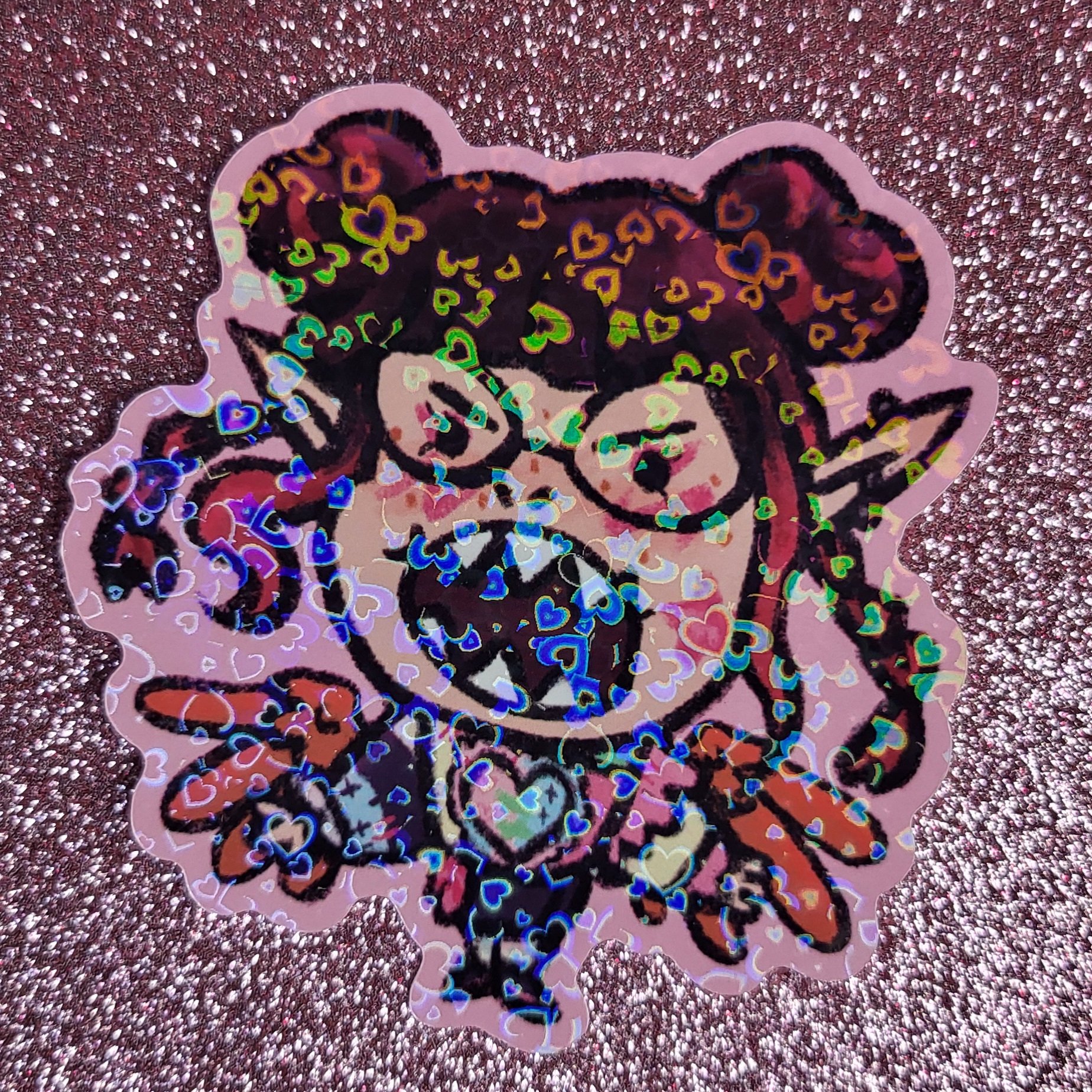 3"x3" die cut vinyl sticker with heart holographic film. SQUASQUASQUAAAAA